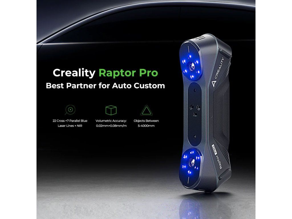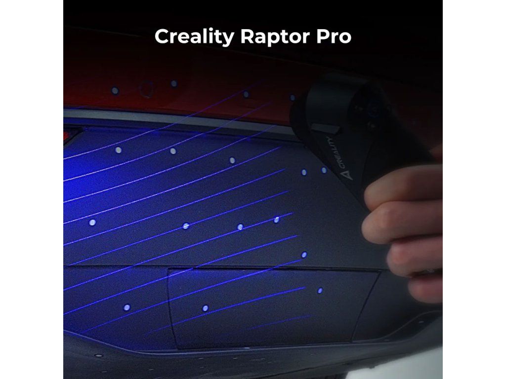 Creality CR-Scan Raptor Pro je metrologický 3D skener s přesností až 0,02 mm, navržený pro profesionální skenování středních a velkých objektů v náročných podmínkách průmyslu i kreativní tvorby. Disponuje třemi nezávislými pracovními režimy – modrým paralelním laserem (7 čar), modrým křížovým laserem (22 čar) a infračerveným binokulárním strukturovaným světlem – takže si poradí jak s drobnými detaily, tak s velkoplošným skenováním celých vozidel nebo lidského těla.