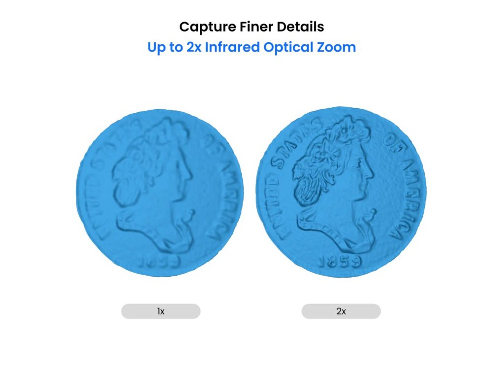 | Technologie | Quad-camera Infrared Structured Light s optickým zoomem a Ultra-resolution Photogrammetric Metrology |