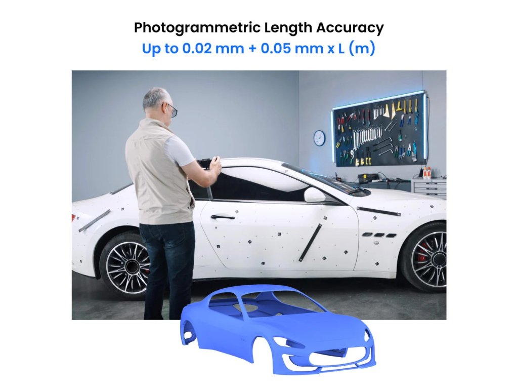 | Fotogrammetrická délková přesnost | 0,02 mm + 0,05 mm × L (m) Poznámka: L je maximální měřicí vzdálenost v metrech |