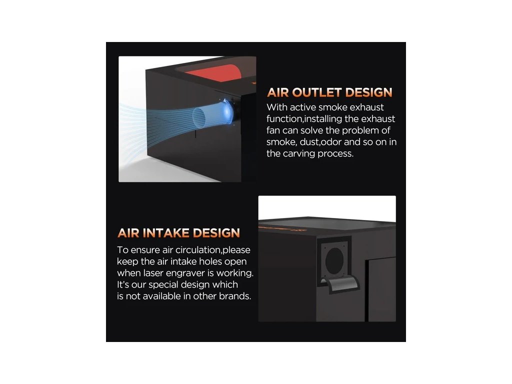 Představte si, že můžete tvořit bez neustálého větrání a starostí o poletující prach. ACMER R20 není jen obyčejný kryt. Je to promyšlené řešení, které aktivně chrání vaše zdraví i vaši dílnu. Díky výkonnému ventilačnímu systému s odvodní hadicí účinně izoluje a odvádí veškeré zplodiny a kouř vznikající při gravírování a řezání. Velké pozorovací okno vám navíc umožňuje mít celý proces neustále pod kontrolou a zároveň chrání váš zrak před laserovým zářením.