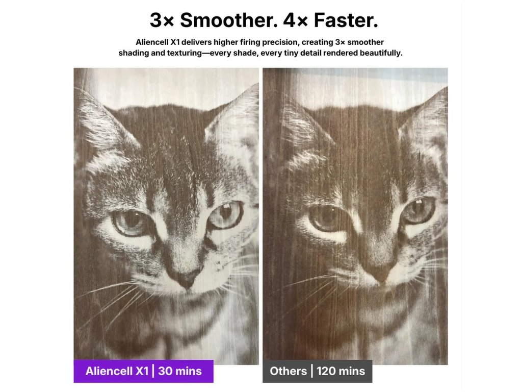 Aliencell - X1 20W - Inteligentní laserová gravírovačka s real-time renderingem a 20 000 mm/s² akcelerací