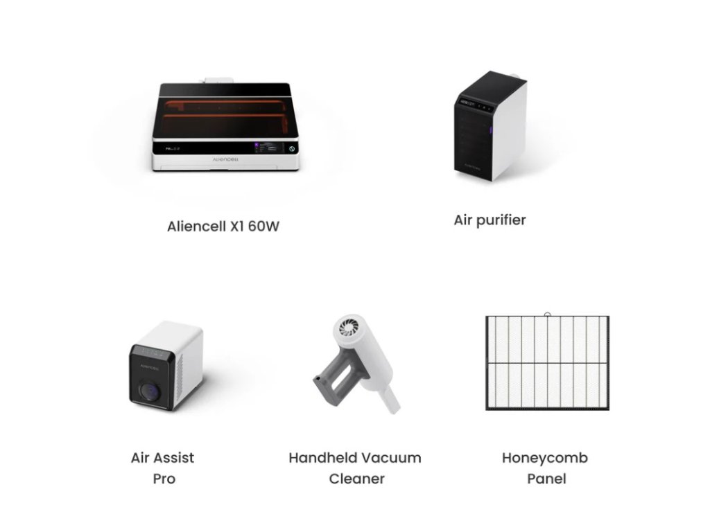 Pokud již máte profesionální příslušenství z předchozích projektů nebo chcete začít s minimální investicí a doplňovat příslušenství postupně podle potřeb, varianta Machine je ideální volba. Obsahuje kompletní laserovou gravírovačku Aliencell X1 s 60W laserovým modulem (velikost bodu 0,08×0,1 mm) — nejvyšším výkonem řady X1, duálními 8MP kamerami, 6,86" touchscreenem, automatickým zaostřením, AI detekcí materiálů, ochranným krytem Class 1, 10 senzory plamene s automatickým hasicím systémem, napájecím adaptérem a USB kabelem. Vše, co potřebujete pro okamžitý profesionální start s maximálním výkonem a inteligentními funkcemi pro nejnáročnější projekty.