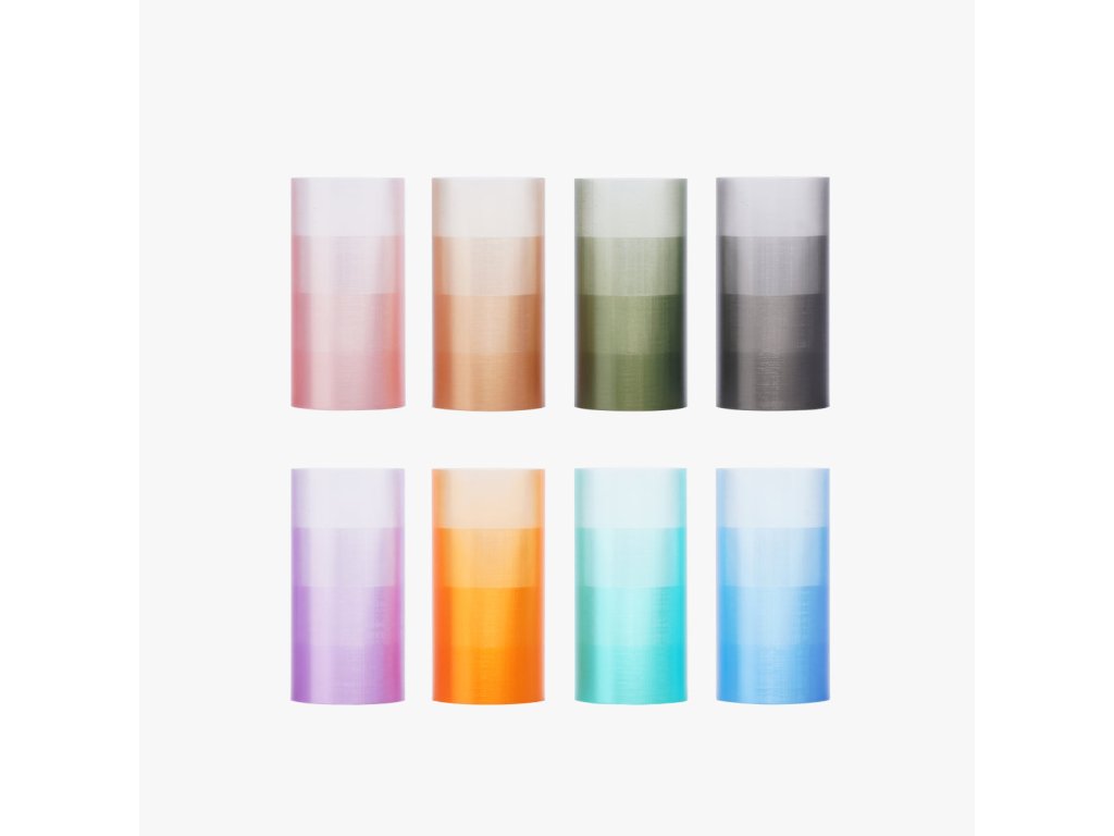 Bambu PETG Translucent nabízí 8 zářivých barev, ze kterých si můžete vybrat. Vylepšete své výtisky bezproblémovým mícháním různých barev a experimentováním s různými tloušťkami vrstev a stěn.