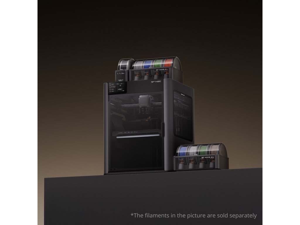 H2C AMS Combo -- Ultimate Set -- Maximální versatilita pro náročné projekty: Pro profesionály, kteří vyžadují maximální flexibilitu a rozsah materiálů. Kromě obsahu Standard setu obsahuje dodatečně: 1× AMS 2 Pro (celkem 2 jednotky = 8 slotů), 1× AMS HT pro high-temperature materiály (PC, PA, PPA), 3× další indukční hotendy 0,4 mm a 2× regular hotendy (0,2 mm + 0,6 mm) pro různé detaily. Tato konfigurace umožňuje pracovat s širší paletou materiálů současně -- kombinovat běžné filamenty s vysokoteplotními technickými materiály a využívat různé průměry trysek pro optimální výsledky v jednom tisku. Ideální pro výrobní firmy, prototypovací studia a náročné uživatele, kteří chtějí plně využít potenciál Vortek systému bez omezení.