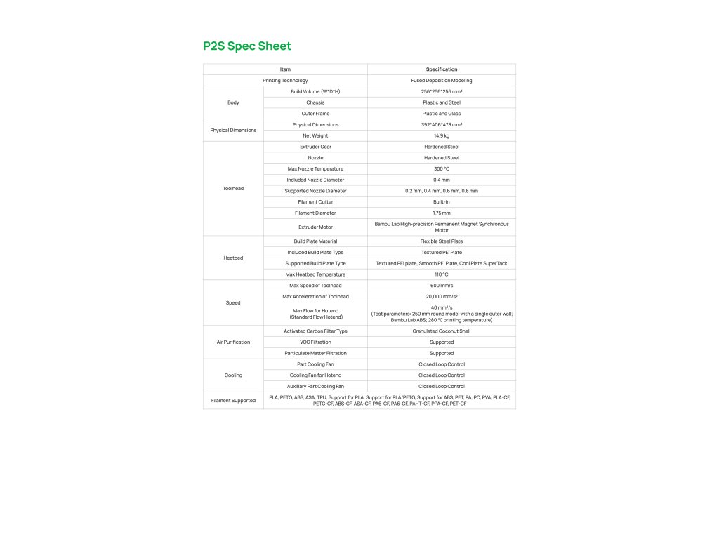 - Extrémní rychlost 600 mm/s: Díky vylepšené CoreXY mechanice a výkonnému chlazení dosahuje P2S maximální rychlosti až 600 mm/s a dechberoucí akcelerace 20 000 mm/s². Vaše projekty budou hotové v rekordním čase.