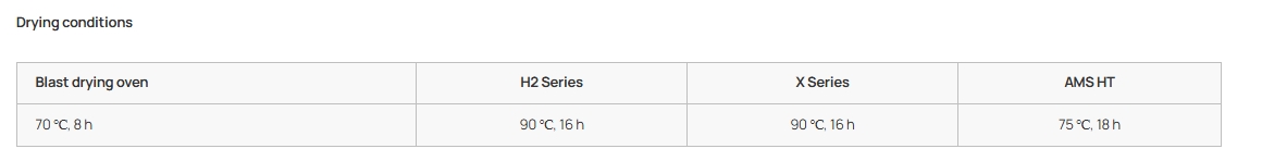| Sušení - X Series | 90 °C / 16 h | 90 °C / 16 h |