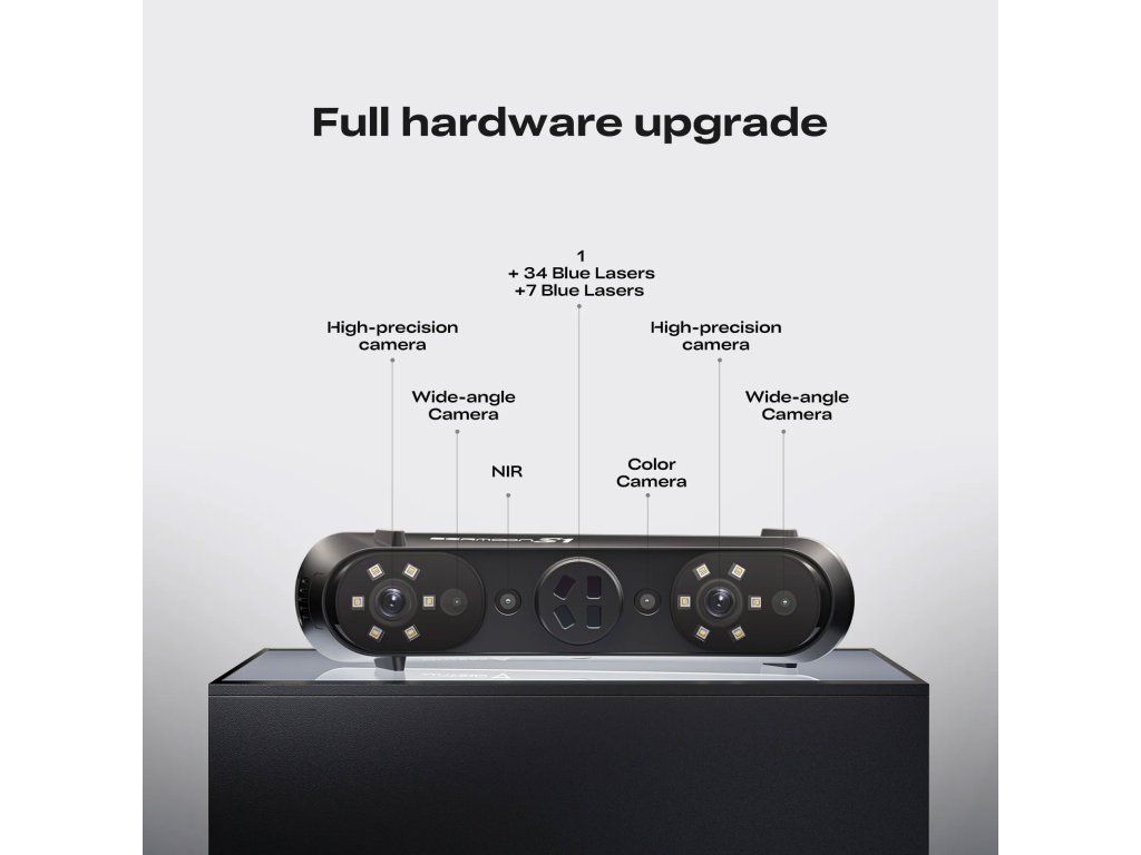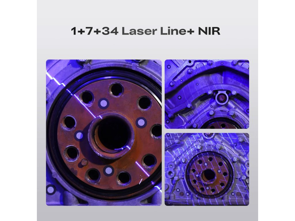 - ✅ 5 skenovacích režimů v jednom zařízení – Jednolinový, 7linový a 34linový modrý laser pro precizní skenování pevných objektů, plus blízkodosahový a dálkový IR režim pro skenování bez markerů – tváře, těla, velké objekty.