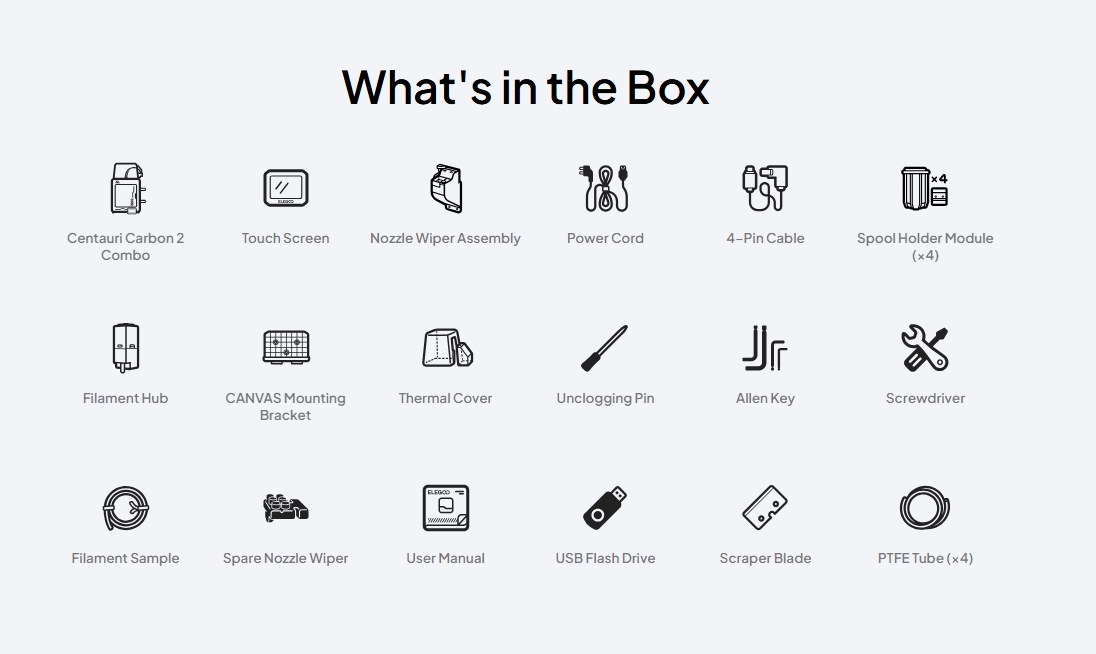 Filamenty pro Elegoo Příslušenství pro Elegoo Stáhnout ElegooSlicerHledáte 3D tiskárnu, která zvládne vícebarevný tisk, tiché chování, a zároveň poradí s technickými materiály jako PC, PA nebo filamenty s karbonovými vlákny? Elegoo Centauri Carbon 2 Combo s integrovaným systémem CANVAS je přesně to řešení pro váš domov i dílnu — kompletní ekosystém pro aditivní výrobu od začátečníků po pokročilé tvůrce.