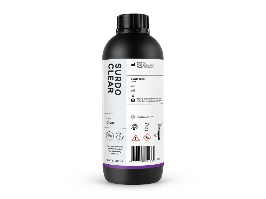 HARZ Labs Surdo Clear je čirý fotopolymer určený pro tisk přesných dílů v oblasti audiologie, zdravotnictví a vývoje individuálních sluchadel. Materiál nabízí vynikající čirost, vysokou pevnost a dlouhodobou rozměrovou stabilitu bez žloutnutí.