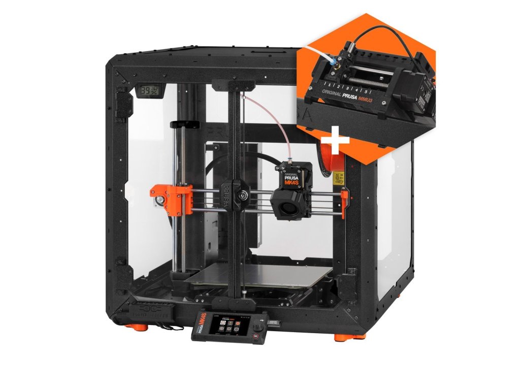 Tisk jednobarevný, otevřené prostředí. MMU3 a Enclosure lze dokoupit kdykoliv později.