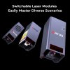 - Univerzální kompatibilita laserových modulů: Zařízení podporuje moduly o výkonu 10 W, 20 W a 40 W, což umožňuje široké využití od jemného gravírování po silné řezání.