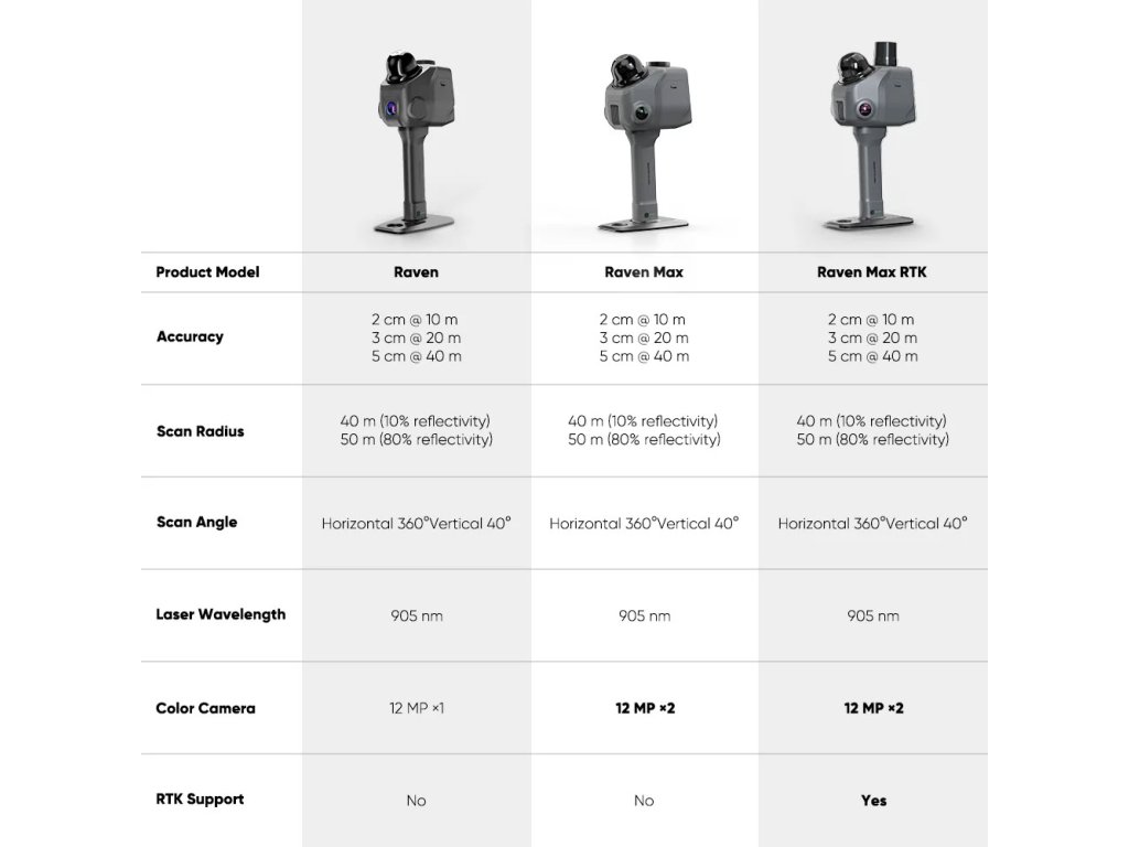 - ✅ Geodeti a terénní průzkumníci: Raven Max RTK s RTK kitem nabízí georeferenční skenování pro mapování terénu, GIS projekty a srovnávání skenů v čase.