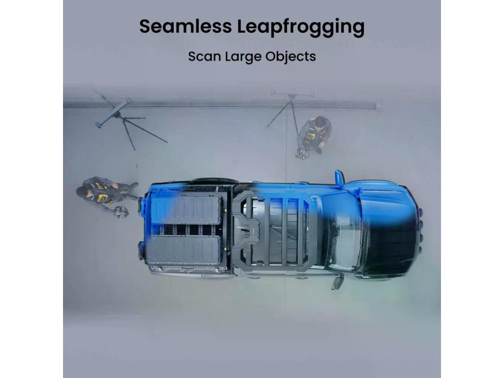 - ✅ Tři skenovací režimy – maximální flexibilita pro každou situaci: Track Scan (sledované skenování) pro malé až střední objekty bez markerů, Multi-position Scan (vícepozicové skenování) pro velké objekty s automatickou registrací napříč více pozicemi Trackeru (ideální pro automobily, stroje), a autonomní Marker Scan (handheld režim s markery) pro situace, kde Tracker nelze použít – úplná flexibilita pro jakékoli pracovní prostředí.