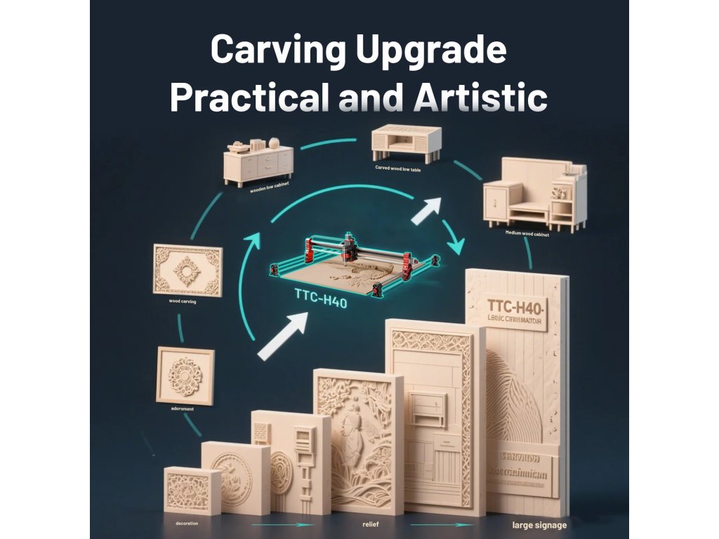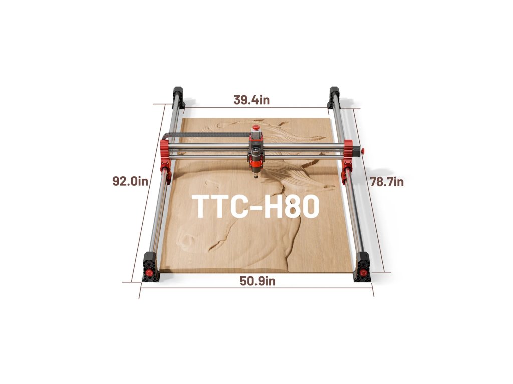 Model TTC H80 je výkonný CNC router navržený pro gravírování, frézování a obrábění různých materiálů – od dřeva, přes plasty až po měkké kovy. Díky robustní konstrukci a pracovní ploše 1000 × 2000 × 100 mm poskytuje dostatek prostoru i pro větší projekty, a to jak v domácím dílenském prostředí, tak v profesionálním provozu.
