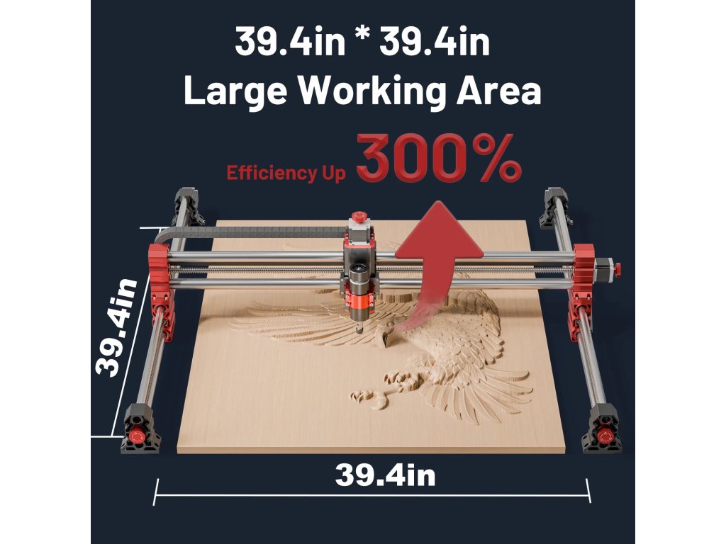 - Velká pracovní plocha: 1000 × 2000 × 100 mm – ideální pro řezání desek, značení panelů a výrobu složitějších tvarů.