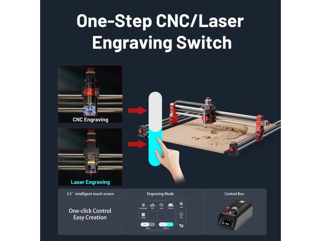 - Přesné a stabilní zpracování: Tělo z hliníkové slitiny a kuličkové šrouby s vysokou přesností zajišťují hladký pohyb os a precizní výsledek.