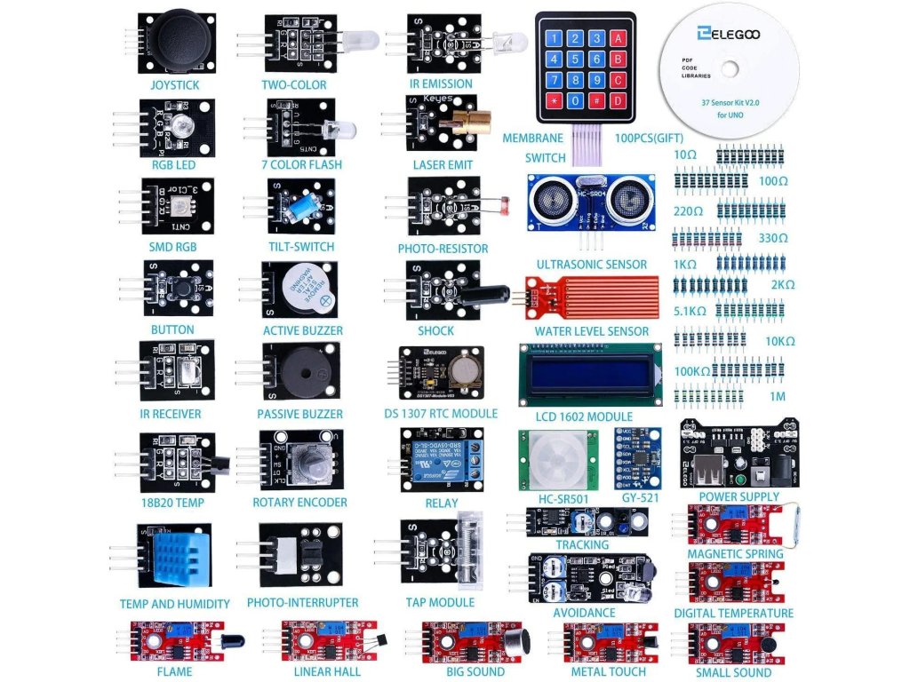 - ELEGOO Upgradovaná sada senzorových modulů 37 v 1 s výukovým programem kompatibilní s Arduino IDE UNO R3 MEGA2560 Nano