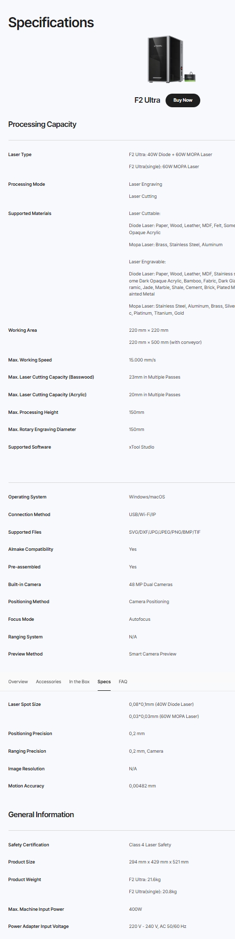 | Parametr | xTool F2 Ultra 60W MOPA + 40W Dioda |