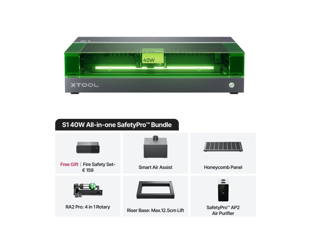 xTool S1 – 40W je výkonná uzavřená diodová laserová řezačka nové generace. Spojuje maximální bezpečnost, vysoký výkon a modulární rozšiřitelnost, takže je ideální volbou pro náročné tvůrce, vzdělávací instituce i profesionály. Díky rychlému gravírování, bezpečnostní třídě laseru 1 a široké kompatibilitě s materiály, jako je dřevo, akrylát, kůže a další, se snadno přizpůsobí vašim kreativním i výrobním potřebám.